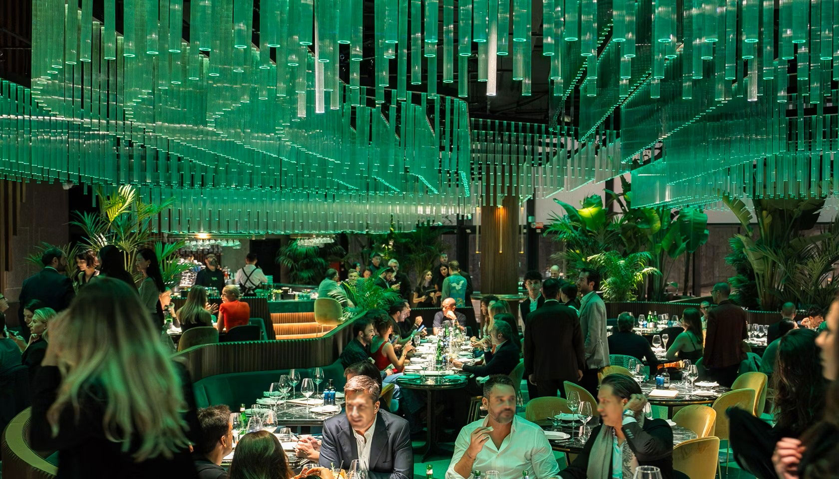 Le lampade in vetro verde fluo creano un’atmosfera sofisticata, perfetta per serate glamour. - Orari: