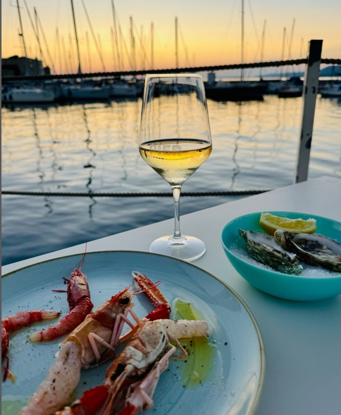 L’offerta culinaria è basata essenzialmente su pesce a chilometro zero e, come detto, si rinnova di stagione in stagione per offrire sempre materie prime fresche. Il tutto da godere in un ambiente “elegantemente informale”, dove colori, arredi (in parte di recupero) e accessori (come le lampade in rete) armonizzano perfettamente Pier al contesto del porto in cui si trova.