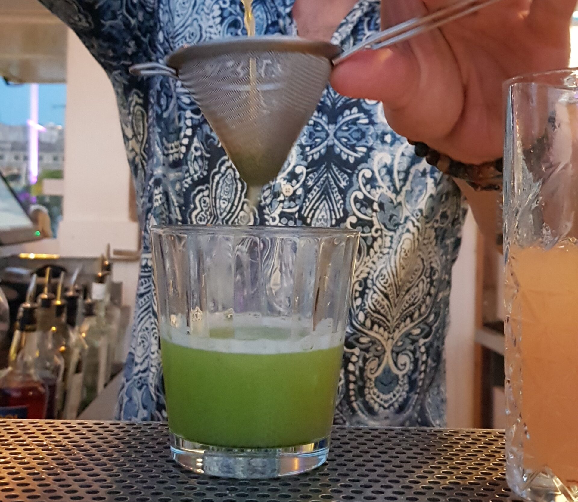 Il “doppio” cocktail bar Pier the Roof (aperto dalle 17 alle 2) propone una drink list basata soprattutto su cocktail low alcool: come l’Aperol a Mo’, ispirato al Naked and Famous ma con Italicus al posto del mezcal, il che lo rende più fresco e meno alcolico dell’originale. Non mancano comunque i classici, magari con qualche rivisitazione come il Negroni preparato con tecnica throwing, giustificata non solo dalla spettacolarità, ma anche dal sapore del risultato finale.