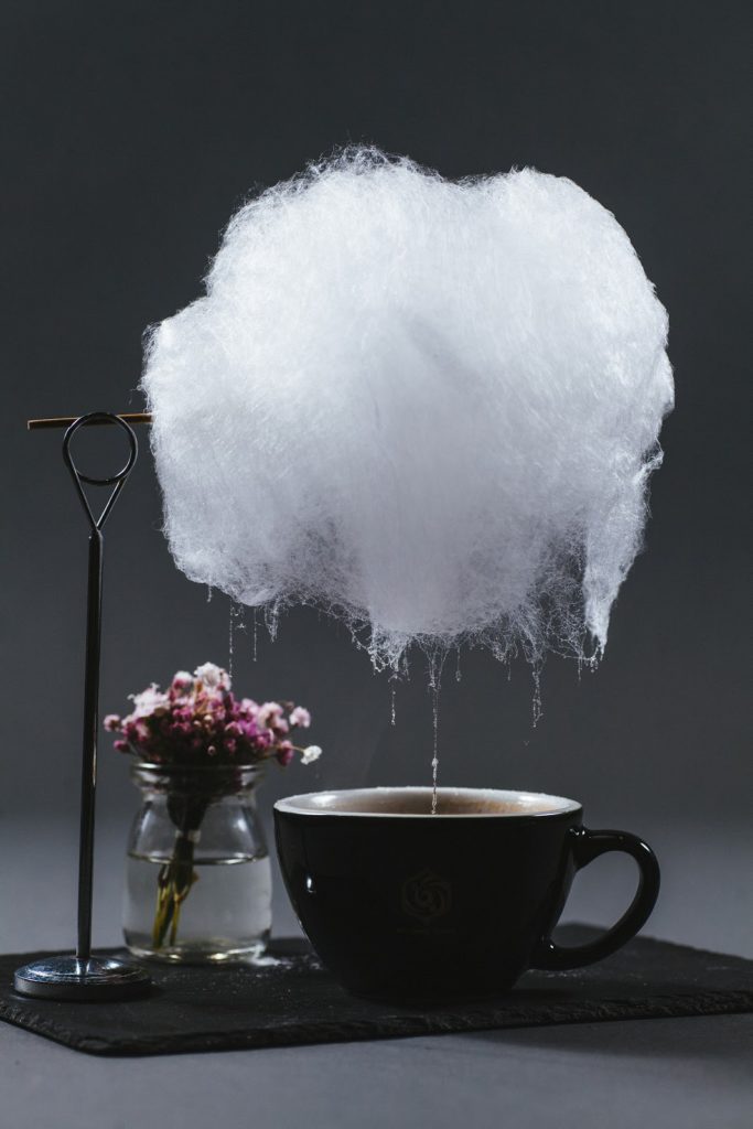Si tratta di un caffè servito con sopra una nuvola sospesa di zucchero filato, che si scioglie piano piano, addolcendo la bevanda.