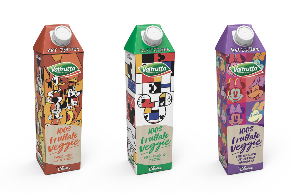 La nuova veste grafica di Valfrutta 100% FRULLATO VEGGIE diventa così un’esperienza educativa e divertente per grandi e piccini, incoraggiando tutti ad approcciare il mondo artistico attraverso una sana alimentazione. Il linguaggio universale dell’arte contemporanea e i personaggi di Topolino accompagneranno i consumatori in un viaggio all’insegna del divertimento, stimolando immaginazione e creatività.
