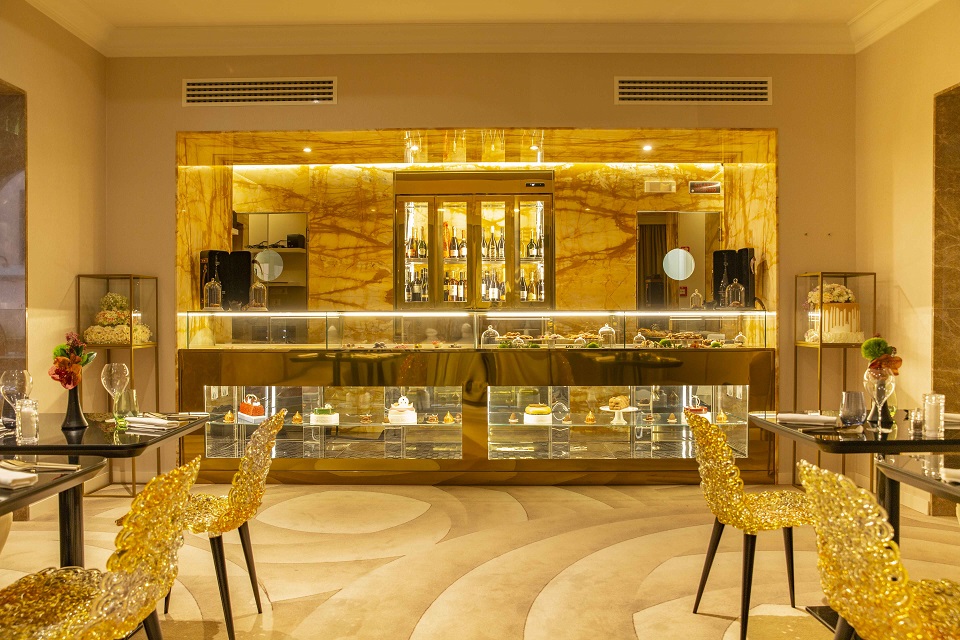 Il salotto di alta pasticceria dell’hotel più goloso del gruppo The First Hotels a Roma, racchiude artigianalità, creatività e qualità declinate in questa una boutique pâtisserie all’italiana che esprime un concept esclusivo ispirato alla dolcezza. Un indirizzo gourmet ad alto tasso di eleganza e artigianalità che trova la sua massima espressione nella vetrina dei dolci di scuola moderna: piccola pasticceria, praline e dessert al cucchiaio da consumare lungo tutto l’arco della giornata, dalle 12:00 alle 23:00, con una proposta di cucina snella per questo luogo di fascino e senza tempo che farà sembrare all’ospite di essere a Londra come a New York.
