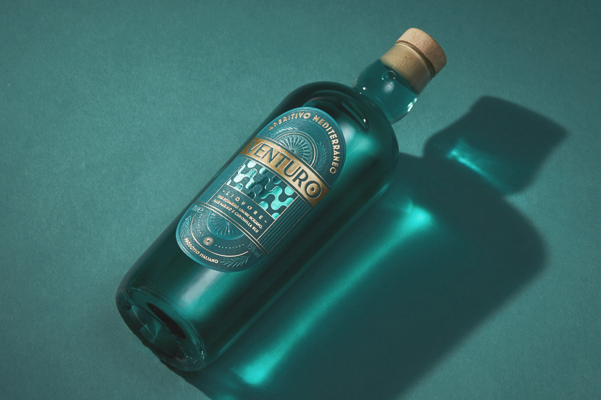 La rivoluzione dell’aperitivo si tinge di blu con VENTURO Aperitivo Mediterraneo, il nuovo liquore base per l’aperitivo creato dal team innovation di Diageo e ispirato alla bellezza e all’eleganza dei profumi e dei sapori delle coste del Mediterraneo. Un liquore innovativo lontano dai soliti bitter con un inedito color turchese a ricordare le acque del Mediterraneo, che determina l’identità di VENTURO e dei suoi ingredienti come i limoni italiani, il sale marino, il rosmarino e la camomilla blu.