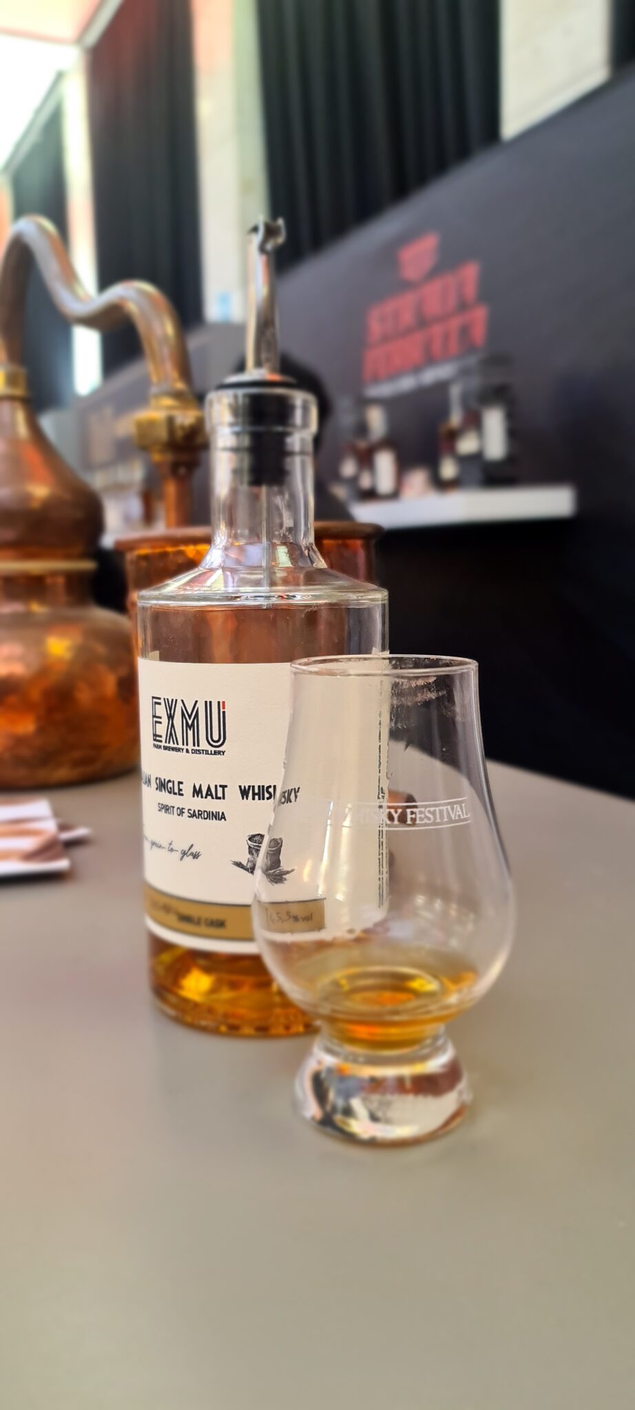 Tra i nuovi produttori italiani di whisky, visti all’ultimo Whisky Festival a Roma, si è fatta notare Exmu, piccola distilleria e microbirrificio nata all’interno di un’azienda agricola a Sassari, che produce anche gin e distillati di birra.