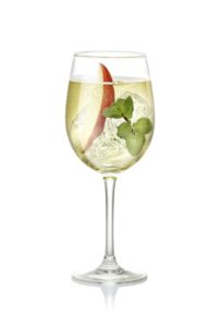 Versare tutti gli ingredienti direttamente nel calice da vino. Mescolare leggermente. Decorare con un rametto di menta e uno spicchio di mela rossa.