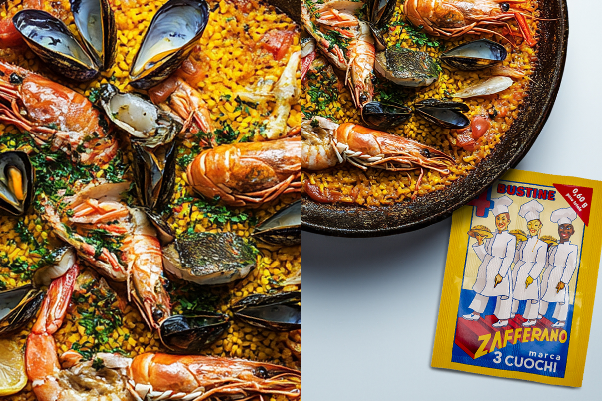 Zafferano 3 Cuochi, che dal 1935 è un alleato prezioso in cucina, rende omaggio a questa pietanza e alla sua festa: incontrando la tradizione mediterranea, colora di giallo una paella di pesce d’eccellenza dal gusto raffinato, perfetta da replicare a casa per sentirsi veri chef. Se preferite realizzarla con pollo e verdure, non dimenticate la regola d’oro del piatto valenciano: non mescolare il riso, e lasciare che la parte che rimane attaccata alla padella dia alla ricetta il suo sapore caratteristico.